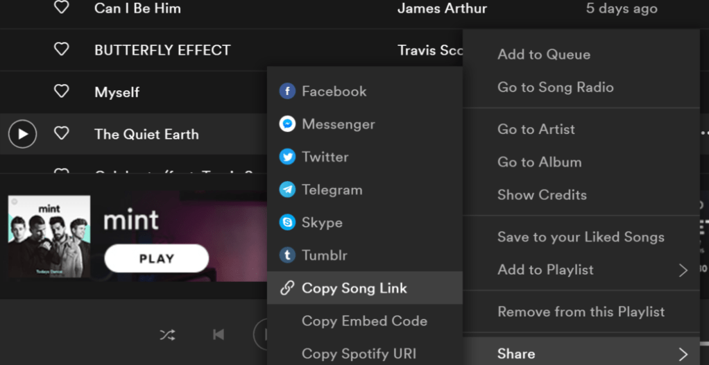 π Go ahead, try it out! Go to the channel you decided on, and paste a Spotify song link you get in the following manner.