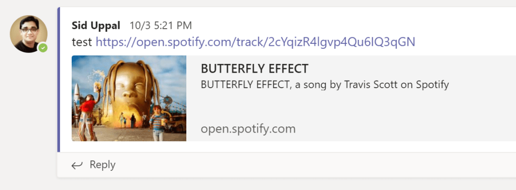 Anyone in your team would be able to go to the “Community Playlist” channel, or whatever you want to call it, and share a Spotify song link.